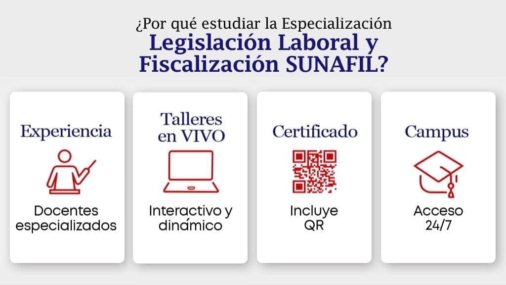 Profundiza en la normativa laboral peruana y adquiere herramientas prácticas para gestionar contratos, despidos, remuneraciones y beneficios sociales con sustento técnico. Prepárate para afrontar actuaciones inspectivas y procedimientos sancionadores ante la SUNAFIL.
